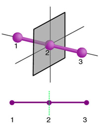 Mirror plane in a linear symmetrical molecule.