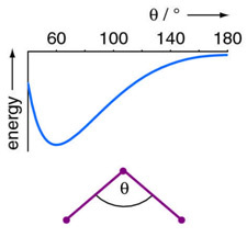 Computed total electronic energy as a function of bond angle for H3+.