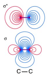 Bonding and antibonding MOs from HAOs in a C–C bond.