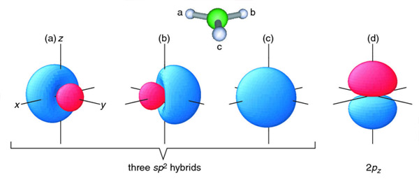 Plots of the three sp2 hybrids and 2pz AO.