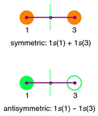 Symmetric and antisymmetric combinations for the end 1s AOs.