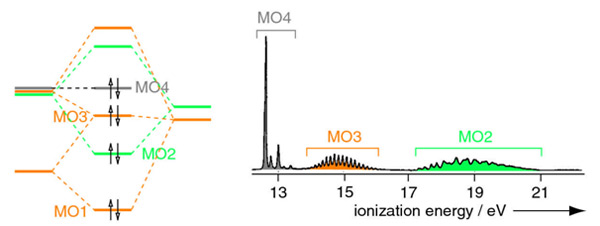 In comparison, Figure 4.31 (b) is the full MO diagram of N2. Here the occupied orbitals are 2σg (bonding), 2σu (weakly antibonding), 1πu (bonding) and 3σg (weakly bonding, HOMO).