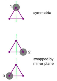 Mirror plane in a triangular symmetric molecule.
