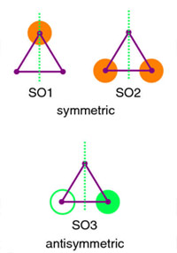 As a consequence the AO for the central atom is symmetric and the AOs for the two identical end atoms have no mirror symmetry (see Figure 4.2).